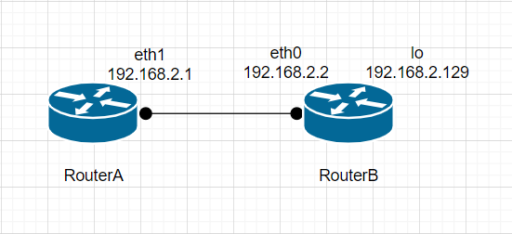 RouterAからRouterB(192.168.2.129)にpingが通ること