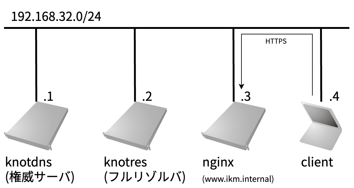 - それぞれのサーバに Knot DNS, Knot Resolver, Nginx は構築済み